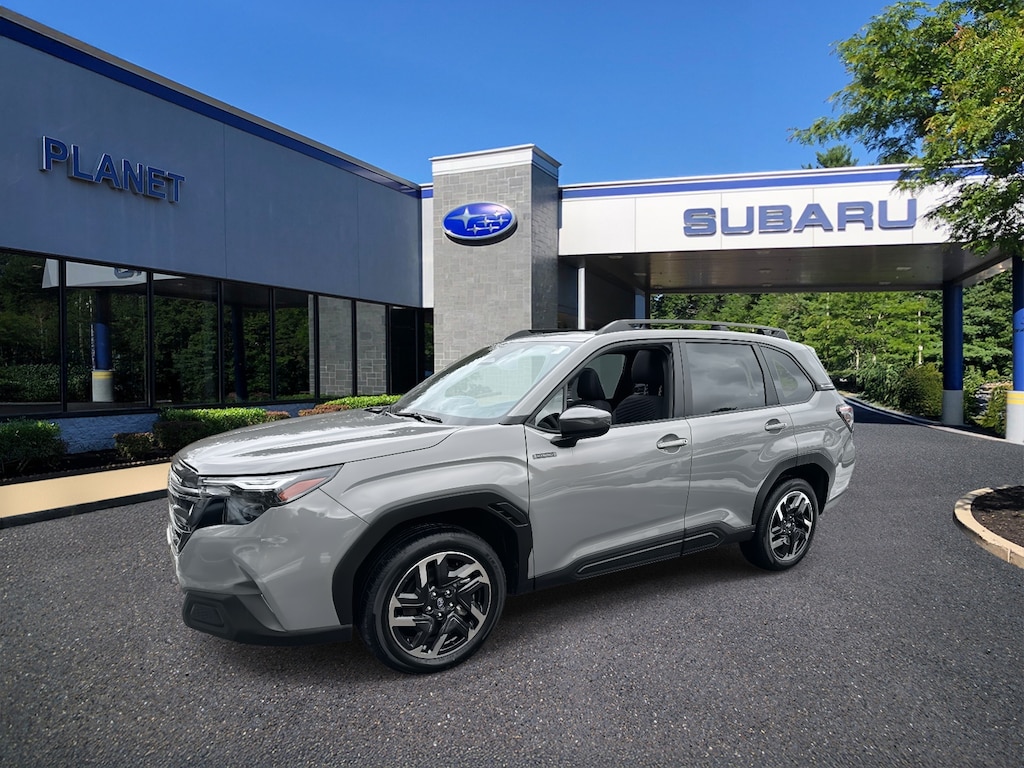 Save big on this nearly new Forester Premium Hybrid! The Premium offers some great features like heated seats, mirrors, and wipers, a HUGE moonroof, plus a power seat, upgraded infotainment, and more. All that and you also get additional power, and better fuel economy! This car was part of our meticulously maintained loaner fleet. Price does include full interior/exterior detail full tank of gas Massachusetts inspection sticker and our famous undealership customer service. Price does not include state charges such as sales tax, title, or registration fees. MA residents may not be able to use app controlled remote start feature shown as standard equipment. Sales and deliveries outside MA may incur additional fees.This car qualifies for FREE tires for life, and much more! Visit https://www.planetsubaru.com/planet-passport-program.htm to learn more.