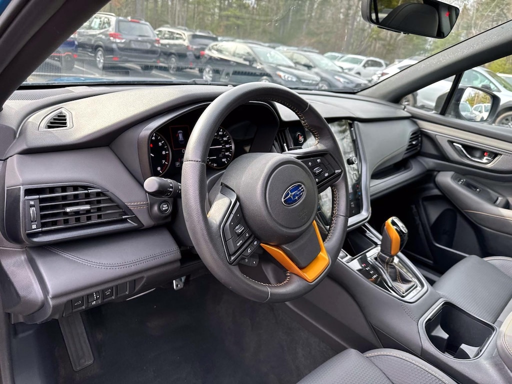 Save big with this Subaru of America promo Outback Wilderness with SUPER low miles! The Wilderness offers unique features like the Startex synthetic leather interior, 9.5 inches of ground clearance, roof rails that hold 700lbs (static load), additional cladding, and an anti-glare hood decal. It also gives you heated seats, mirrors, wipers, dual-zone climate control, our amazing Eyesight safety system, moonroof, navigation, and much more. Price does include full interior/exterior detail full tank of gas Massachusetts inspection sticker and our famous undealership customer service. Price does not include state charges such as sales tax, title, or registration fees. MA residents may not be able to use app controlled remote start feature shown as standard equipment. Sales and deliveries outside MA may incur additional fees.